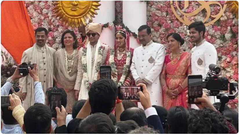 Aam Aadmi Party (AAP) Chief and former Delhi CM Arvind Kejriwal’s daughter Harshita’s marriage to Sambhav Jain was solemnised today at a five star hotel in Delhi. Earlier, at the sangeet ceremony on Thursday night, apart from Kejriwal and his wife, Punjab CM Bhagwant Mann was also seen dancing with his wife.