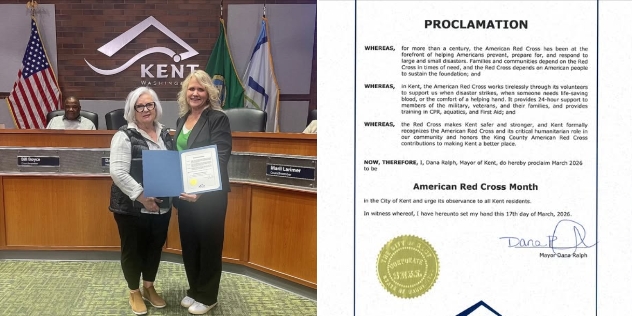 Kent, WA — The City of Kent officially recognized March as American Red Cross Month during a recent City Council meeting, highlighting the organization’s vital contributions to the community.