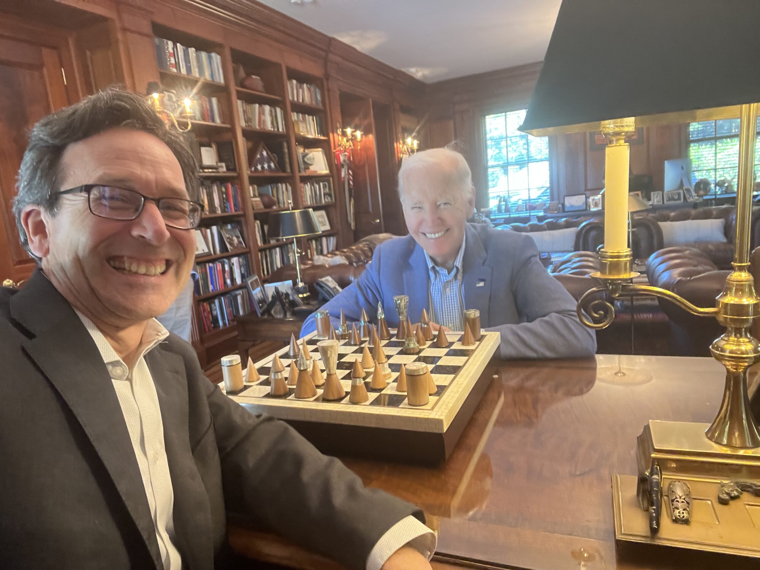I’ve played a lot of chess in my day, but never against a President! Great to see Joe Biden and hear his thoughts about navigating challenging times. We discussed a few good moves- on and off the board. pic.twitter.com/X21q2NC9mn