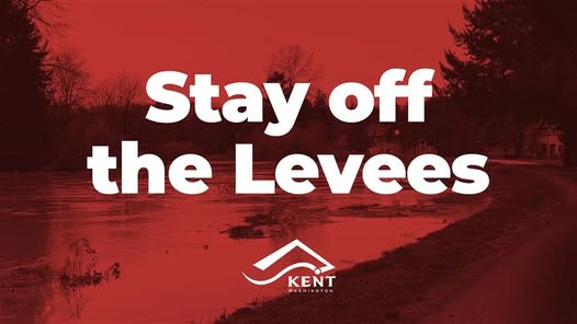 Kent, WA — The Kent Police Department has issued a public safety reminder urging residents to stay off levees as first responders and public works crews continue to monitor and repair areas affected by flooding.