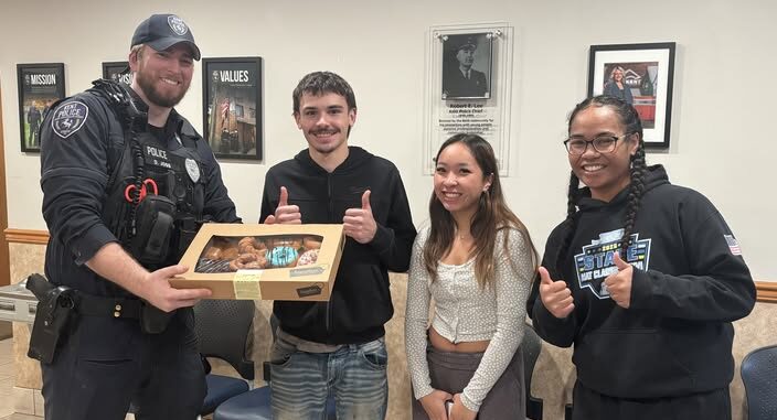 The Kent Police Department received a sweet surprise during a recent visit from Kentwood High School civics students, who stopped by the station as part of a class project. While the visit alone was appreciated, the students went above and beyond by bringing a box of doughnuts—something the department jokingly embraced, saying, “YES WE LOVE DOUGHNUTS AND WE’RE OK WITH THAT.”