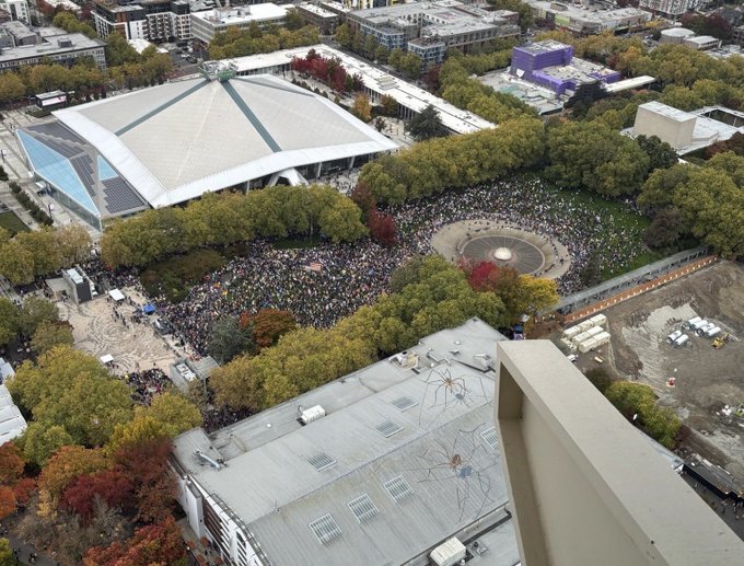 USALarge Crowd Gathers at Seattle Center, Street Closures Expected as March Begins