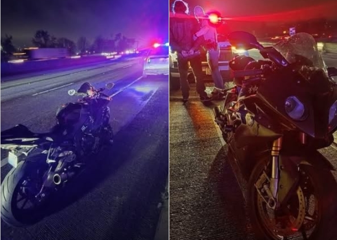 Troopers reportedly lost sight of the motorcycle in Peasley Canyon, but additional units later located it on I-5. The rider eventually pulled over and was detained without further incident.