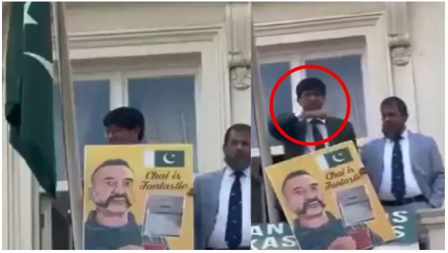 In fact, Indian students and community members had gathered outside the Pakistan High Commission in London to protest peacefully against the Pahalgam attack. Seeing the protest, Pakistan got agitated and coming out of the High Commission, Pakistan’s Defence Attache showed Abhinandan’s picture drinking tea and made a gesture of slitting his throat.