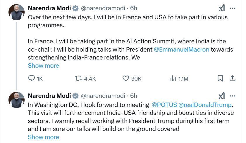 Before America, PM Modi will also go to France for two days. He will reach Paris on the evening of 10 February and attend a dinner organized at the Elysee Palace. The next day on February 11, he will co-chair the third edition of the AI ​​Action Summit.