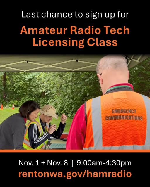 RENTON, Wash. – October 28, 2025 — Due to strong community interest, the City of Renton Emergency Management has announced additional seats for its upcoming Amateur Radio Technician Licensing Class, hosted by the Renton Emergency Communication Service (RECS).