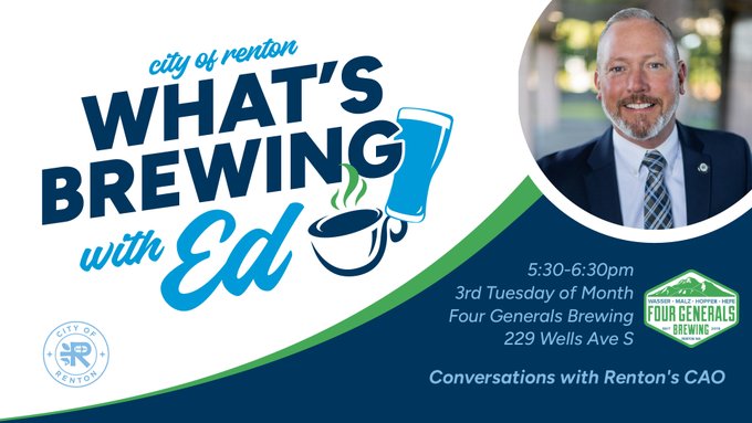 Renton, WA — City of Renton officials are inviting residents to join Chief Administrative Officer Ed VanValey and members of the city’s leadership team for an open community discussion at Four Generals Brewing.