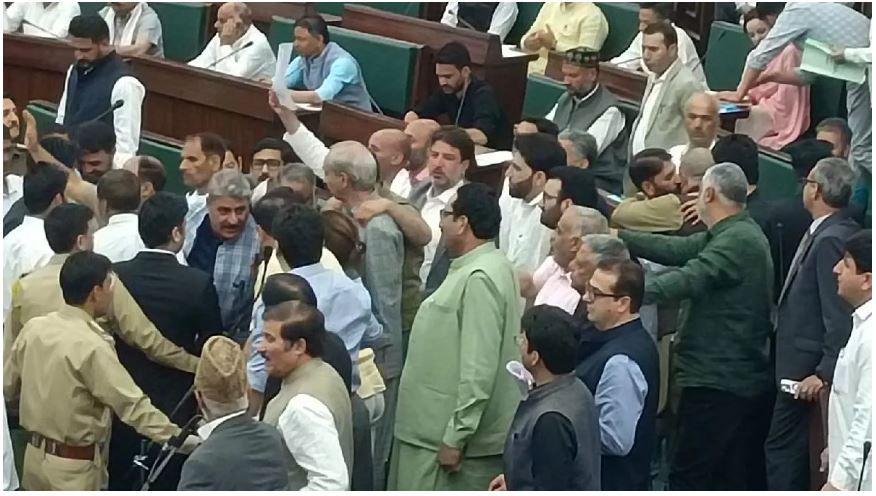 The speaker said, “All of you sit quietly, I know what I have to do” but the uproar did not stop. In the noise, Tanveer Sadiq and Sunil Sharma were heard saying something to each other. Speaker Abdul Rahim Rather adjourned the House for 15 minutes.