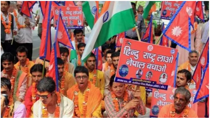 Hundreds of leaders and activists of Nepal’s pro-monarchy Rastriya Prajatantra Party (RPP) on Sunday held a protest rally near the prime minister’s official residence and Parliament House, demanding the restoration of the monarchy and establishing Nepal as a Hindu state.