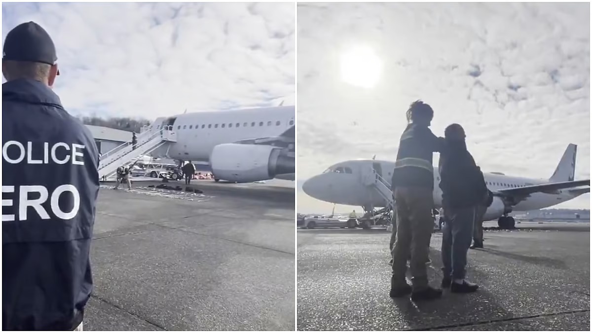 According to J, this flight departed from Seattle. In this video, American officials are seen putting chains on these migrants like terrorists or criminals.