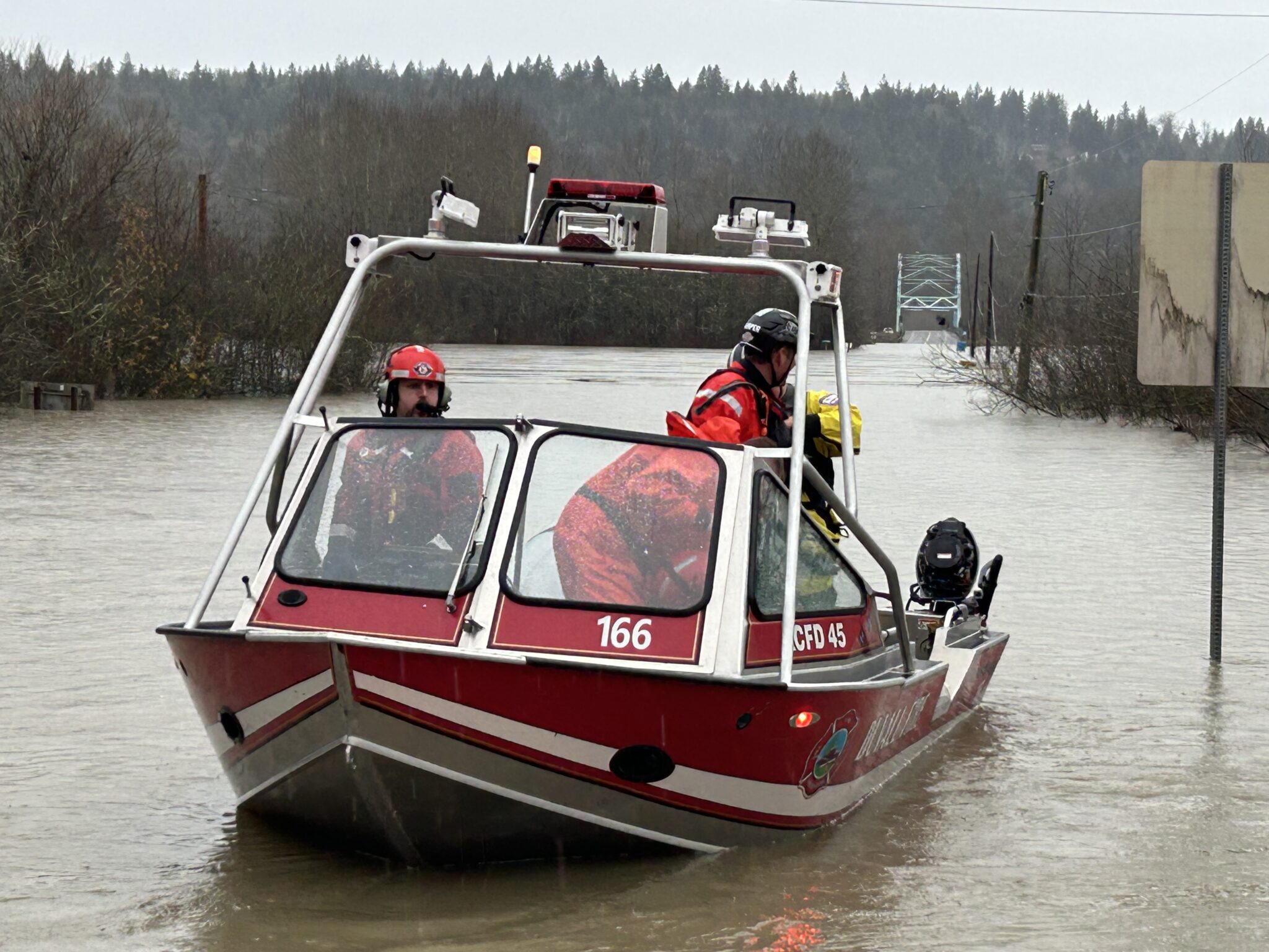 To the south, the Snohomish River also rose to record levels early Thursday, with the potential for overtopping levees and flash flooding. Rivers as far south as the Cowlitz and as far east as the Wenatchee were also experiencing major flooding.