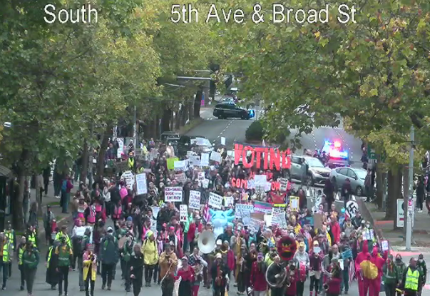 Traffic Disruption: Demonstration Blocks 5th Ave S in Seattle
